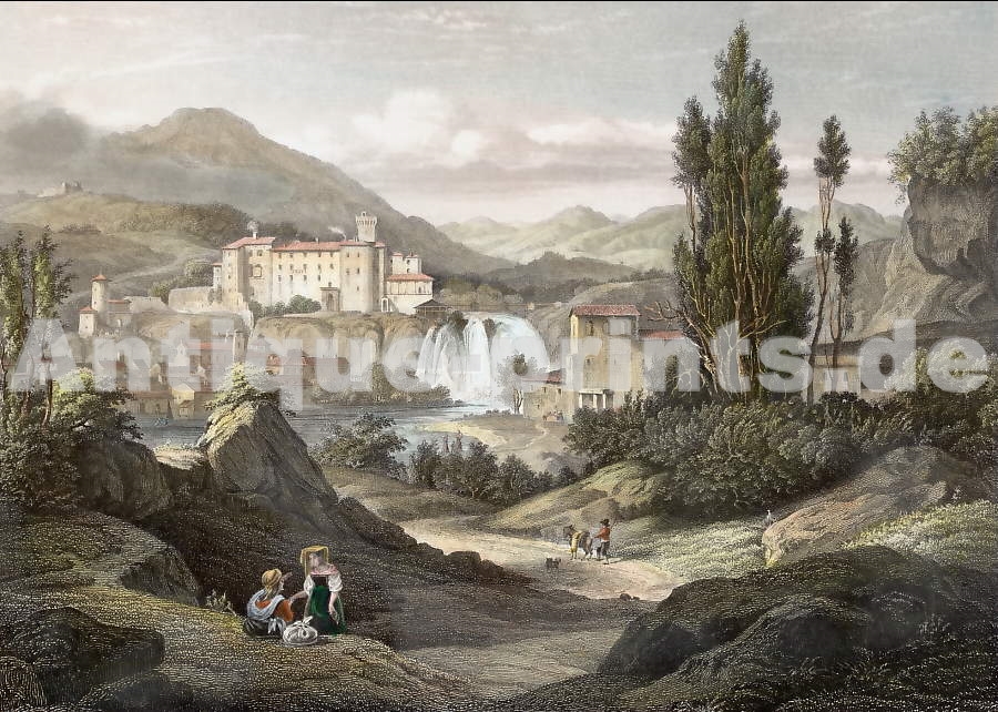 Italie. Gravure sur acier. 1850. Bon état. Aquarellée à la main. 14x10cm. Montée sous passe-partout.