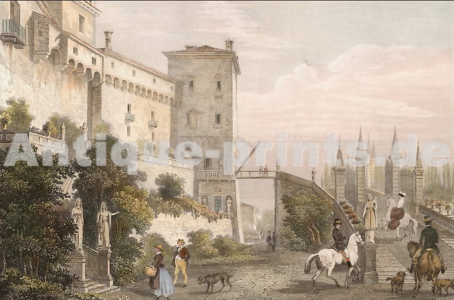 Italie. Gravure sur bois, gravée par Duverger. 1843. Petite rousseur. Aquarellage d´époque. 15x7cm. Montée sous passe-partout.
