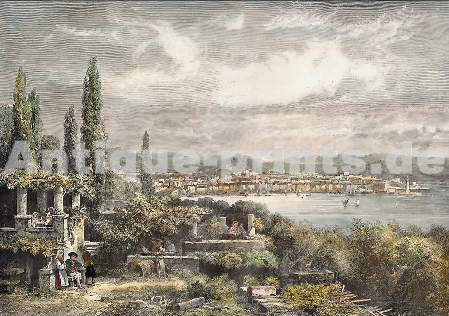 Italie. Gravure sur acier. Bibliograph. Institut in Hidlburghausen. 1861. Bon état. Aquarellée à la main. 15,5x10cm. Montée sous passe-partout.