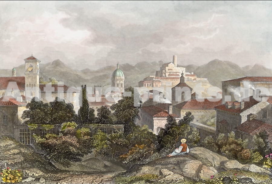 Italy. Original steel engraving, engraved by French after Deroy. ca 1840. Very good condition. Hand-coloured. 16x10,5cm. Matted.