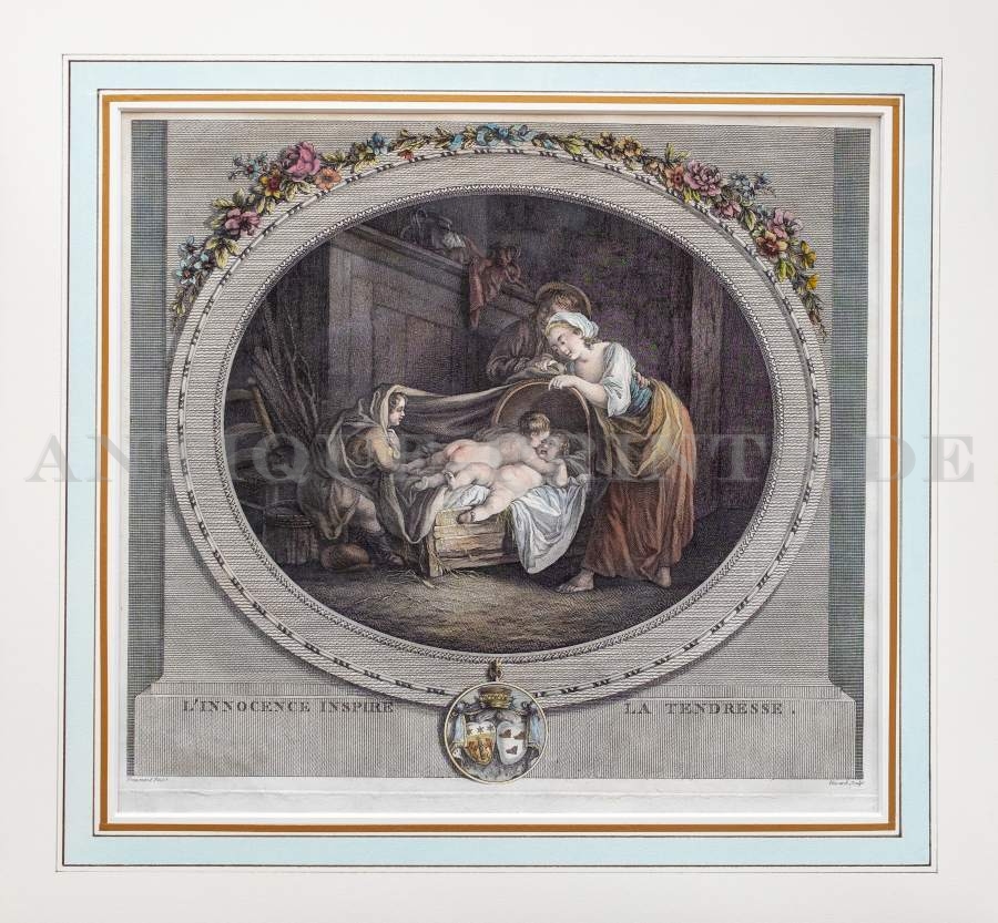 Allégorie. Estampe découpée, cuivre. ca 1720. Très bon état. Aquarellage ancien. 17,5x7cm. Encadrée: 18x15cm. Vendu avec P020152, P020153, P020154. Envoi par DHL uniquement.