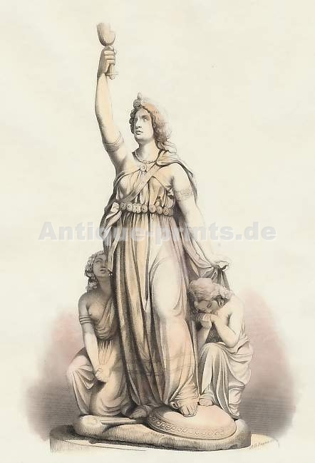 Grèce Ancienne. Gravure sur acier. 1835. Très bon état. Aquarellée à la main. 17x10,5cm. Montée sous passe-partout.