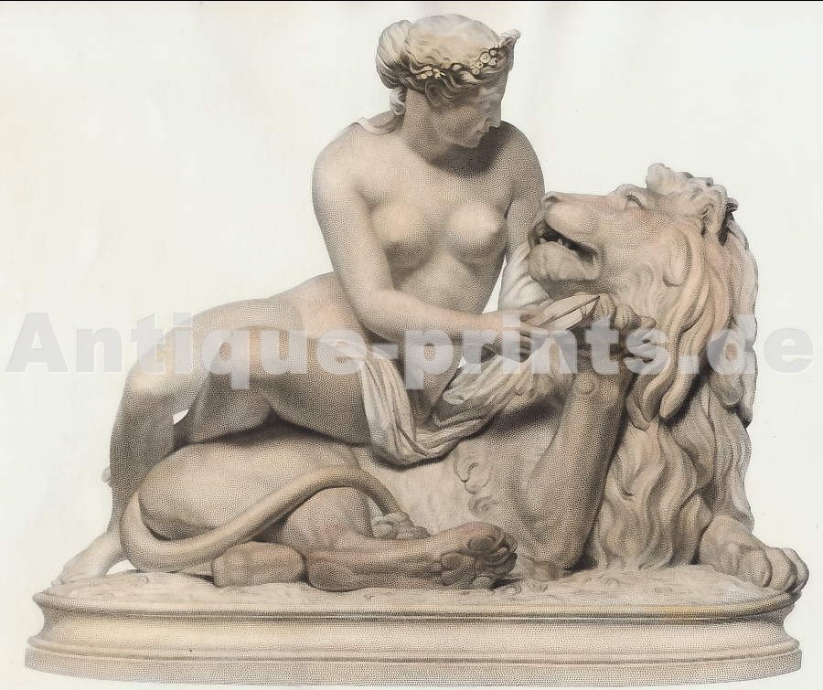 Varia. Gravure sur acier, gravée par J. H. Baker d´après une sculpture de R. J. Wyatt. 1853. Très bon état. Aquarellée à la main. 21x7cm. Montée sous passe-partout.
