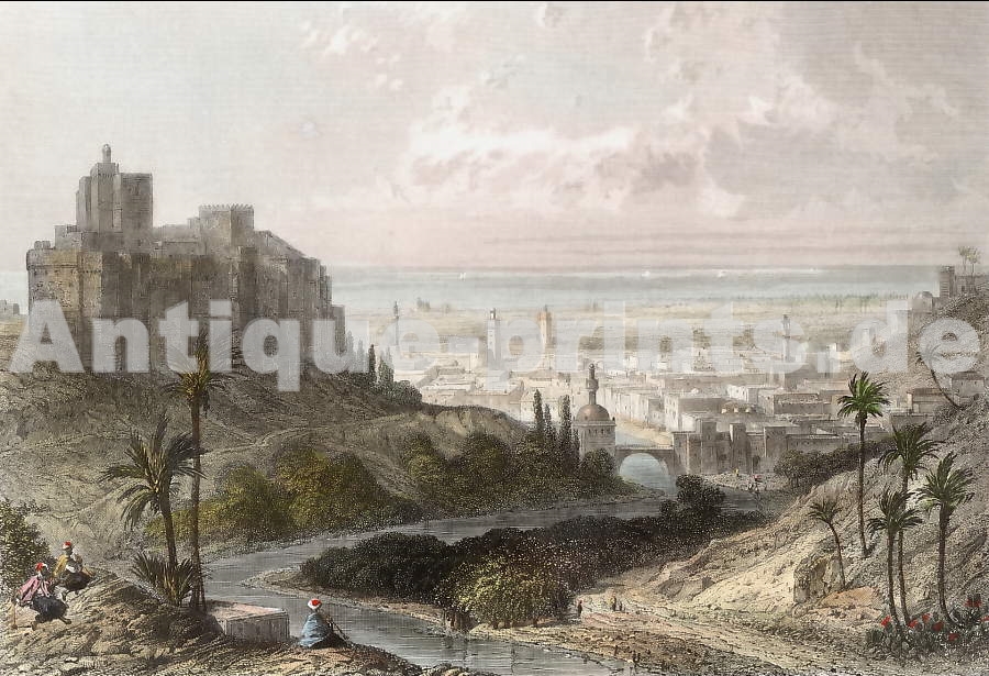 Spain. Original steel engraving drawn by F. Corbaux, engraved by E. Scriven. 1850. Very good condition. Hand-coloured. 18x13,5cm. Matted.