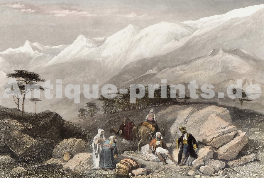 Liban. Gravure sur acier, gravée par S. Bradshaw d´après W. H. Bartlett. 1836. Très bon état. Aquarellée à la main. 19x12,5cm. Montée sous passe-partout.