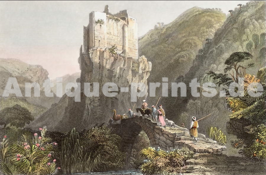 Liban. Gravure sur acier, gravée par S. Bradshaw d´après H. Fenn. ca 1875. Bon état. Aquarellée à la main. 27x17cm. Montée sous passe-partout.