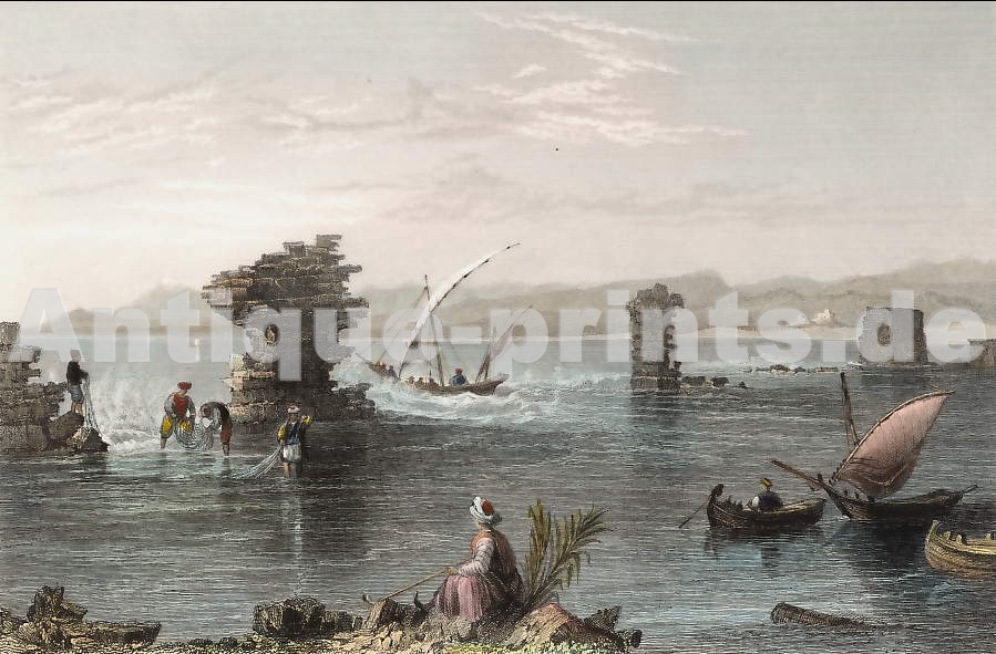 Terre Sainte. Gravure sur acier, gravée par E. Brandard d´après W. H. Bartlett. 1855. Très bon état. Aquarellée à la main. 18x12cm. Montée sous passe-partout.