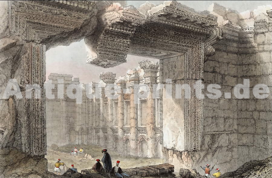 Jordanie. Lithographie de David Roberts. 1887. Bon état. Aquarellée à la main. 23x15. Montée sous passe-partout.