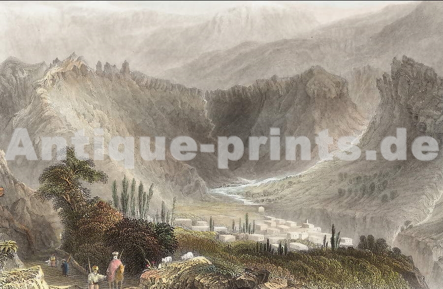 Liban. Gravure sur acier par Lemaître. 1848. Très bon état. Aquarellée à la main. 17x9cm. Montée sous passe-partout.