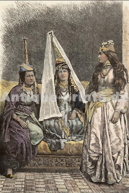 Afghanistan. Gravure sur bois, gravée par C. Bertrand d´après G. Vuillier. 1884. Légères rousseurs dans les marges. Aquarellée à la main. 18,5x12,5cm. Montée sous passe-partout.