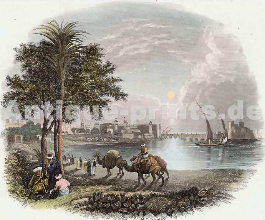 Brésil. Gravure sur acier, gravée par Monnin d´après Vernier. 1838. Légères rousseurs dans le ciel. Aquarellée à la main. 13,5x8,5cm. Montée sous passe-partout.