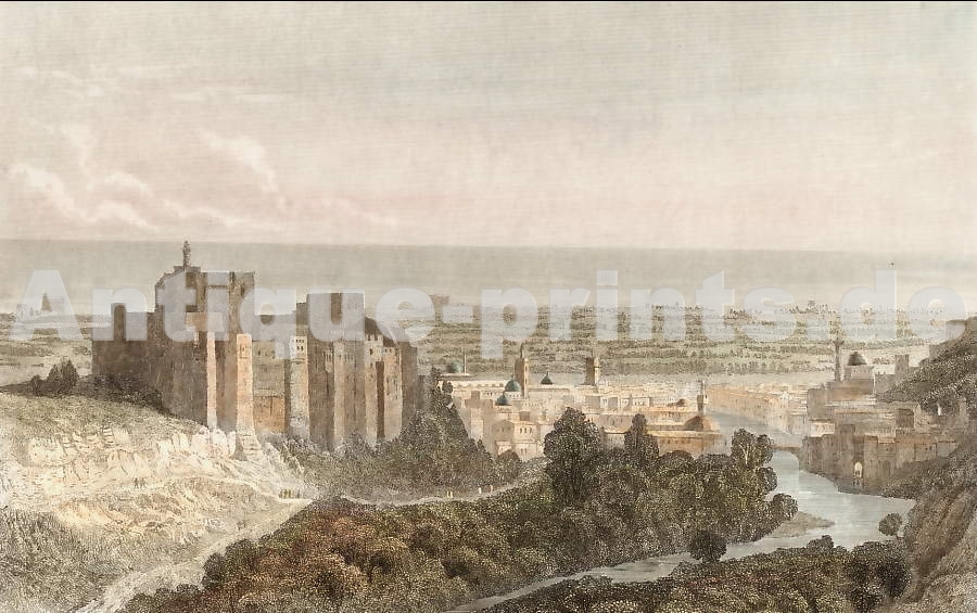 Syrie. Gravure sur acier, gravée par J. Jorden d´après W. H. Bartlett. 1836. Bon état. Aquarellée à la main. 19x12,5cm. Montée sous passe-partout.