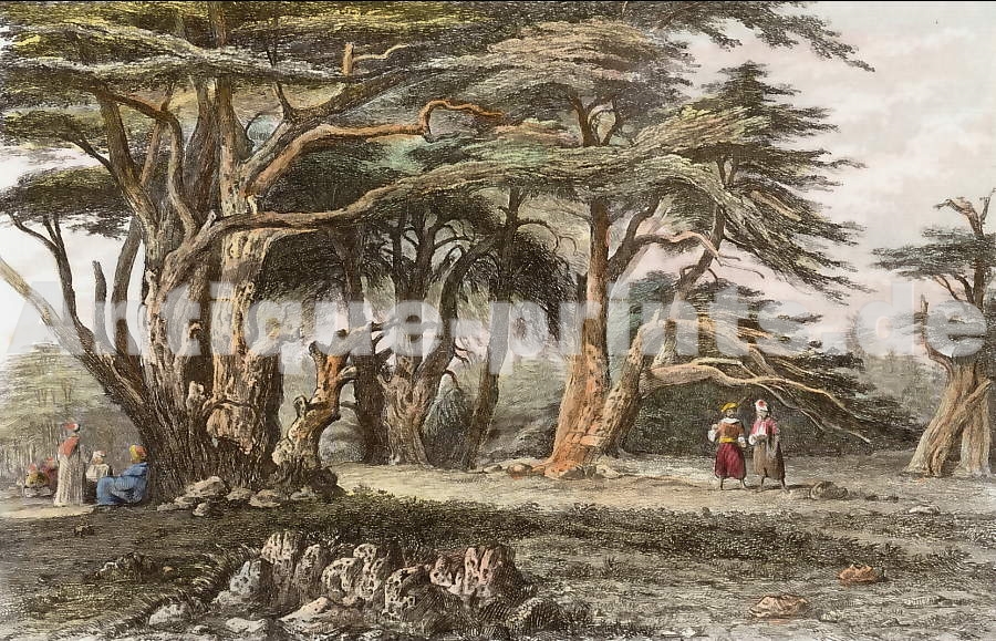 Liban. Gravure sur acier, gravée par Weger. ca 1850. Petit défaut dans la surface gravée. Aquarellée à la main. 16x11,5cm. Montée sous passe-partout.