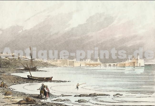 Inde. Carte dessinée et gravée sur acier par J. Rapkin. London, 1858. Vignettes gravées par G. Greatbach d´après A. H. Wray. Légères rousseurs. Bordure décorative, pliure centrale. Aquarellage à la main. 30x24cm. Montée sous passe-partout.