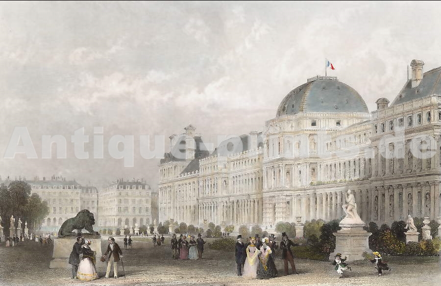Paris. Steel engraving "from original drawings taken under the direction of A. Pugin, the engraving executed under the superintendence of C. Heath". Engraved by J. Redaway. 1831. Good condition. No title under the plate. Hand-coloured. 14,5x9cm. Matted.