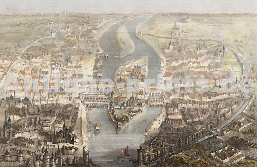 Paris. Stahlstich von J. Davis nach J. Nash. 1830. Guter Zustand. Handkoloriert. 14x9cm. Mit Passepartout.
