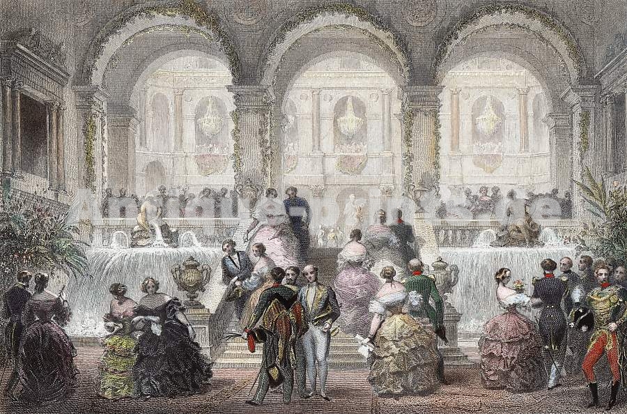 Paris. Steel engraving ""from original drawings taken under the direction of A. Pugin, the engraving executed under the superintendence of C. Heath"". 1831. Good condition. No title under the plate. Hand-coloured. 13,5x8cm. Matted.