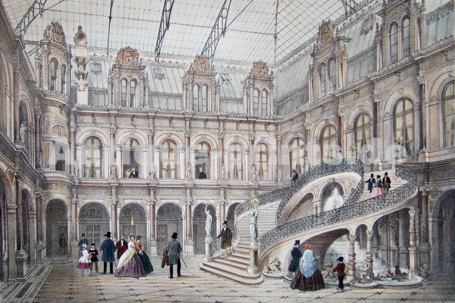 Paris. Original steel engraving engraved by B. Winkles. 1829. Good condition. No title under the plate. Hand-coloured. 13,5x7,5cm. Matted.