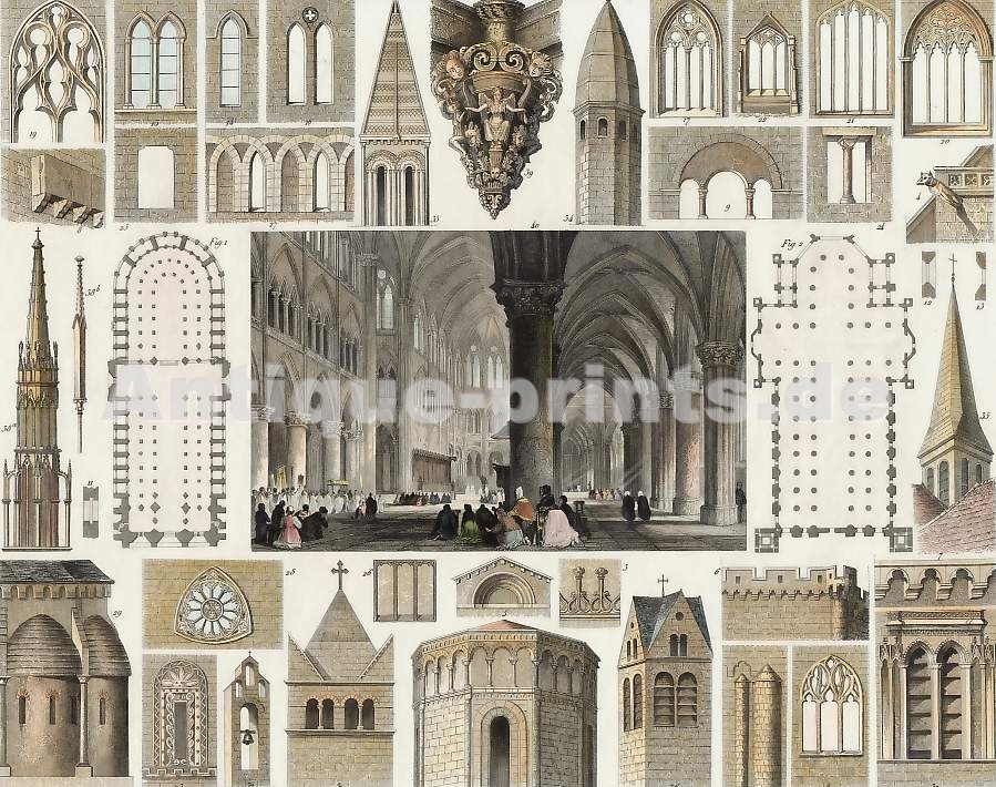 France. Original steel engraving drawn by C. Stanfield, engraved by J. Lewis. 1834. Good condition. Hand-coloured. 13,7x10cm. Matted.