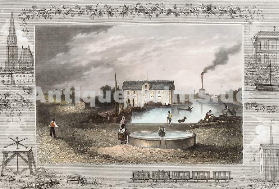 Paris. Stahlstich von M. S. Barrenger nach J. Nash. 1829. Guter Zustand. Handkoloriert. 13,5x8cm. Mit Passepartout.