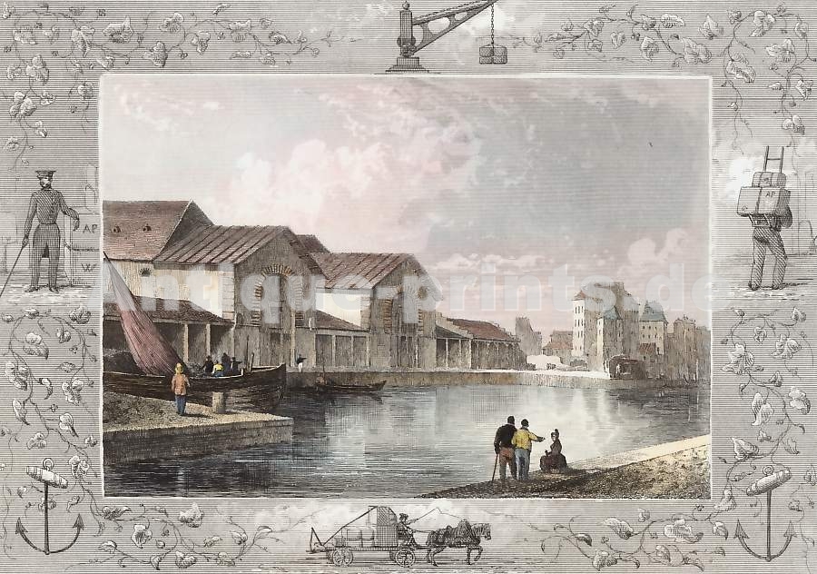 France. Original steel engraving drawn by Samuel Prout, engraved by T. Barber. 1832. Very good condition. Small margins, as issued. Hand-coloured. 14,5x9,5cm. Matted.