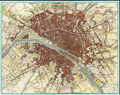 . Stahlstich Sadtplan von R. Schmidt und Mädel nach G. Heck. 1849. Sehr guter Zustand. Handkoloriert. 25,5x20cm. Mit Passepartout.
