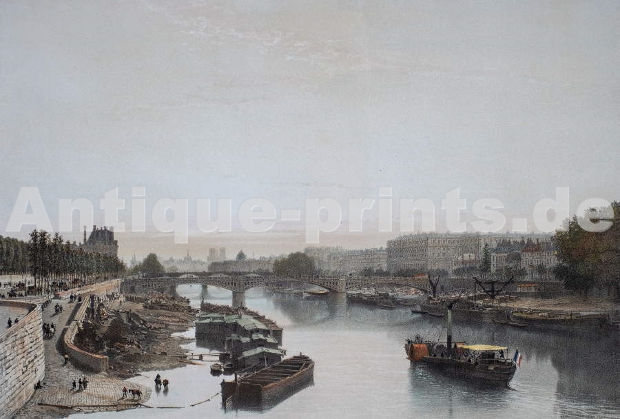 Paris. Stahlstich von C. Heath nach A. Pugin. 1829. Guter Zustand. Kein Titel, auf Chine appliqué. Handkoloriert. 13x9cm. Mit Passepartout.