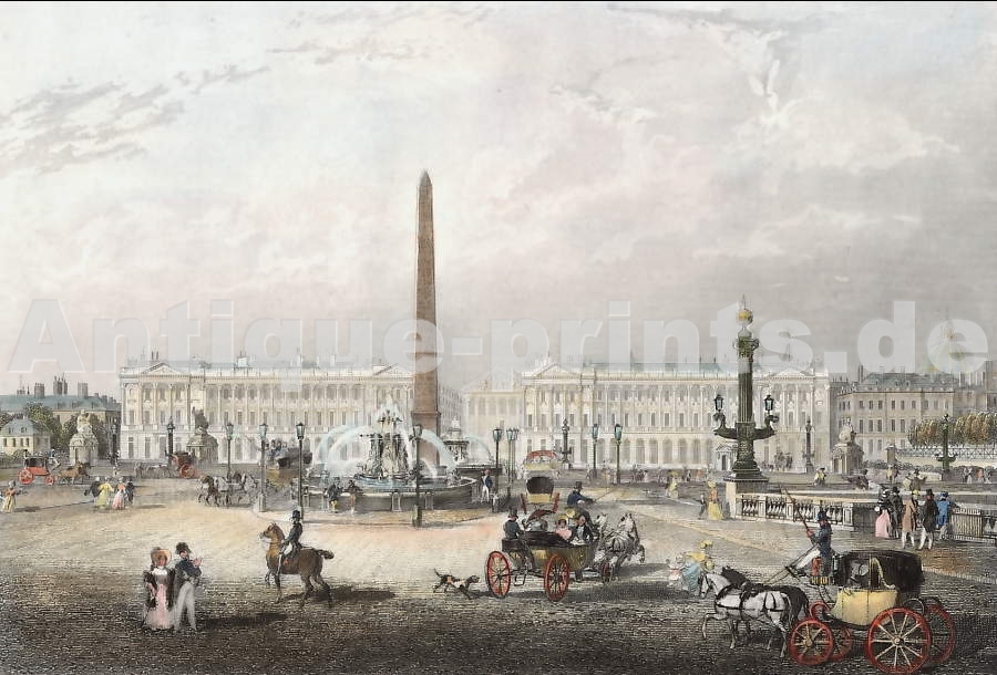 Paris. Gravure sur cuivre, gravée par Pfitzer d´après C. Civeton. 1825. Bon état. Aquarellée à la main. 11,5x7,5cm. Montée sous passe-partout.