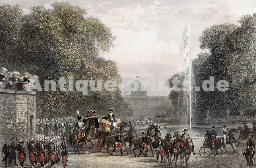 Paris. Gravure sur acier, gravée par B. Metzeroth d´après C. Reiss. Bibliograph. Institut in Hidlburghausen. 1843. Très bon état. Aquarellée à la main. 15,5x10cm. Montée sous passe-partout.