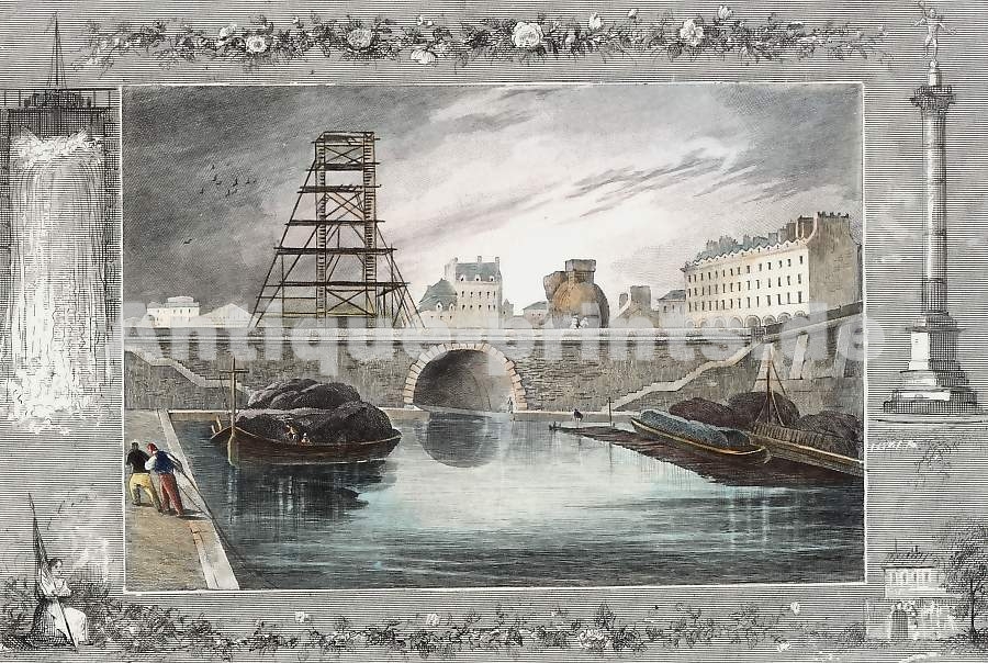 Paris. Gravure sur acier. 1852. Bon état. Aquarellée à la main. 11,5x7,5cm. Montée sous passe-partout.
