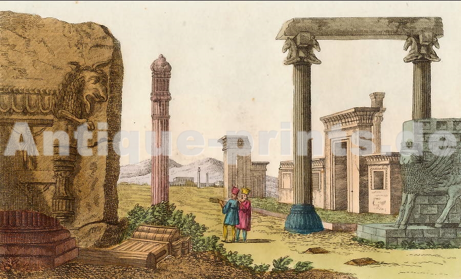 Varia. Gravure sur acier, gravée par W. French. ca 1850. Bon état. Aquarellée à la main. 20x15cm. Montée sous passe-partout.