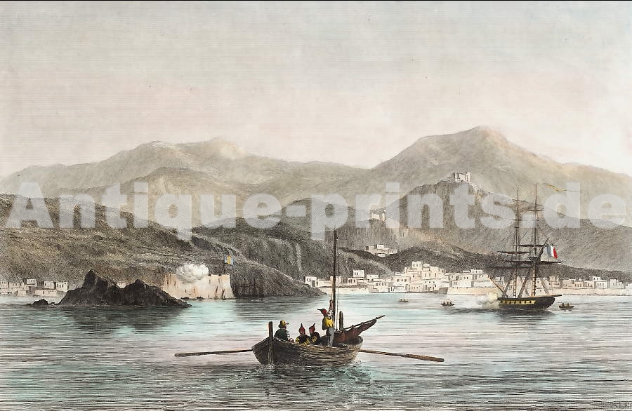Inde. Gravure sur acier, gravée par R. Woodman d´après W. Daniell. 1834. Très bon état. Sans titre. Aquarellée à la main. 13,5x9,5cm. Montée sous passe-partout.