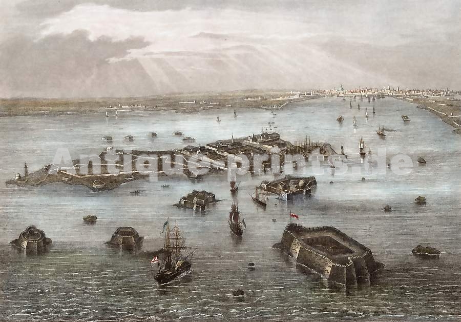 Guam, Mariana Islands. Original steel engraving, engraved by Chavannes after Danvin 1836. Very good condition. Hand-coloured. 13,5x9,5cm. Matted.