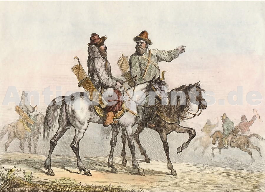 Syrie. Gravure sur acier, gravée par G. Greatbach d´après G. W. Terry. 1851. Très bon état. Bordure décorative. Aquarellée à la main. 17,5x11,5cm. Montée sous passe-partout.