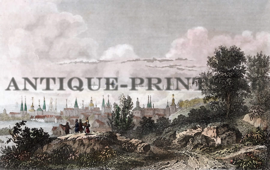 Russie. Aquatinte originale gravée par A. Bernieri. 1825. Bon état. Aquarellage d´époque. 16,5x9cm. Montée sous passe-partout.