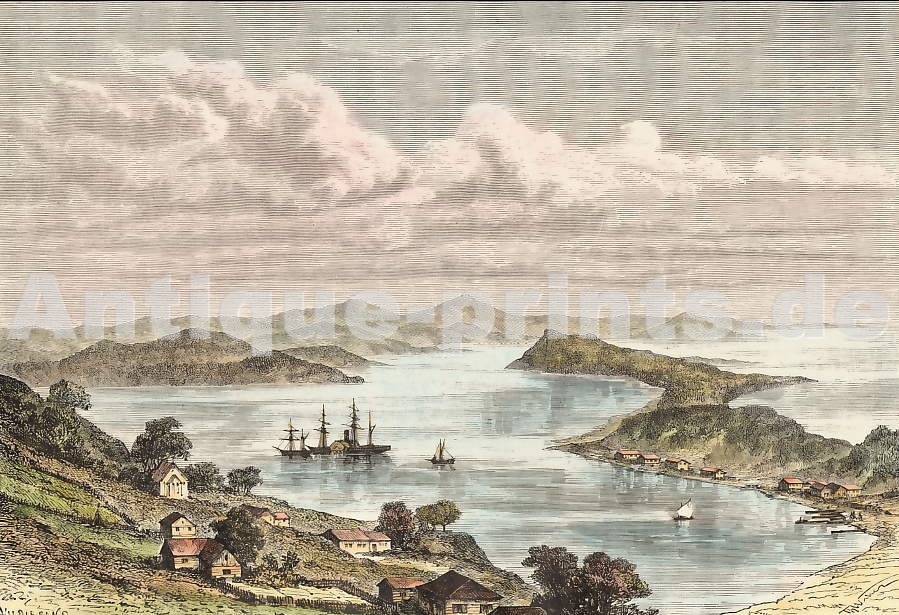 Portugal. Original steel engraving drawn by G. W. Terry, engraved by D. J. Pound. 1851. Good condition. Decorative border. Hand-coloured. 17,5x11,5cm. Matted.