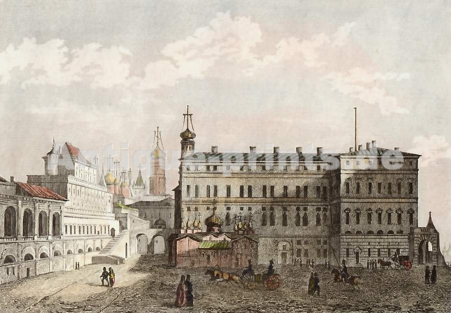 Herculaneum. Original copper engraving, engraved by N. Fiorillo after N. Vanni. 1765. Light foxing. Printed on the reverse side. Hand-coloured (watercolour and gouache). 11,5x7cm. Matted.