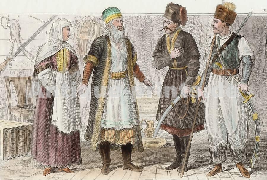 Russia. Original wood engraving drawn by E. Breton. 1846. Very good condition. Hand-coloured. 15,5x10cm. Matted.