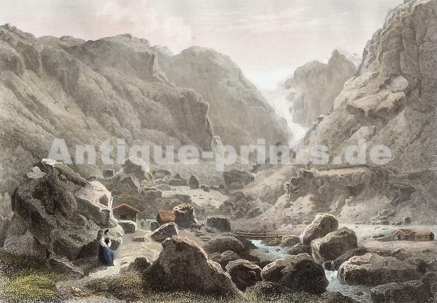 Gravure, Stich, Engraving, Norway, Norwegen, Norge, Norvege, Bondhusgletscher, Folgefonn