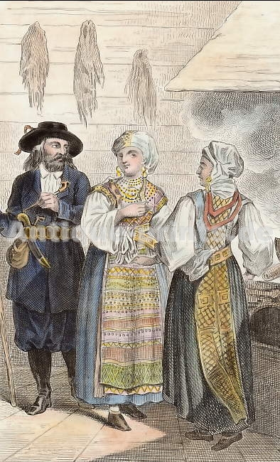 Greece. Original wood engraving engraved by T. Hildibrand. 1886. Good condition. Hand-coloured. 17x11cm. Matted.