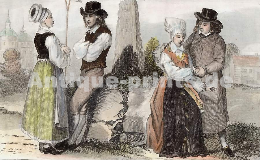 France. Gravure sur acier, gravée par Massard. 1840. Très bon état. Aquarellée à la main. 10,5x9,5cm. Montée sous passe-partout.
