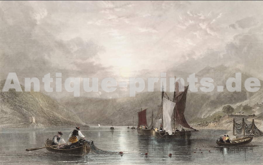 Scotland. Original steel engraving, engraved by E. Willmann after Gavarni. 1859. Very good condition. Original hand-colouring. 17,5x12,5cm. Matted.