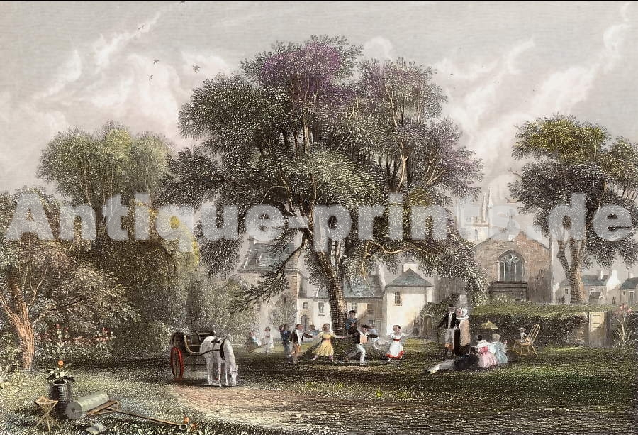 Paris. Original steel engraving, engraved by J. T. Willmore after Eugène Lami. 1843. Good condition. Hand-coloured. 16,5x9,5cm. Matted.