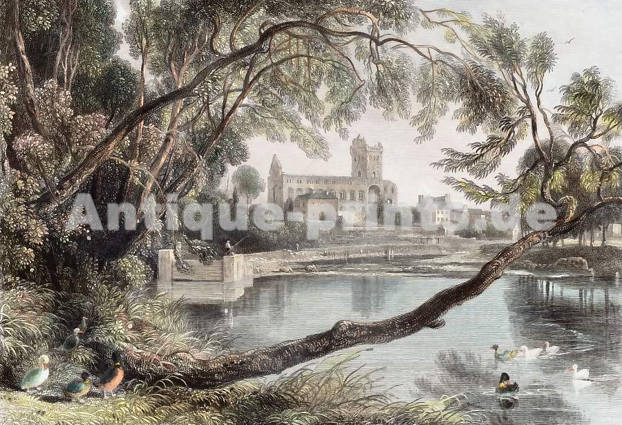 England. Original steel engraving drawn by T. Allom, engraved by S. Lacey. 1832. Very good condition. Hand-coloured. 15x9,5cm. Matted.