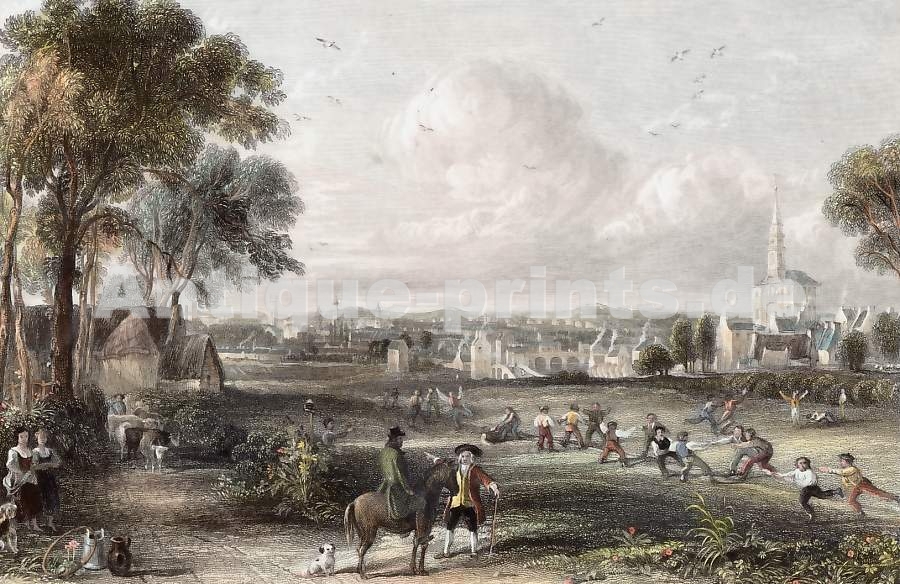 England. Original steel engraving, engraved by W. Le Petit after T. Allom. 1834. Very good condition. Hand-coloured. 15,5x9,5cm. Matted.