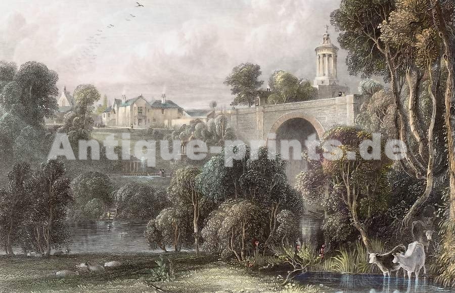 England. Original steel engraving, engraved by J. Thomas after T. Allom. 1844. Very good condition. Hand-coloured. 15,5x9,5cm. Matted.