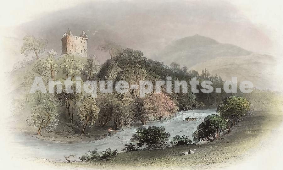 Isle of Wight. Original steel engraving, engraved by H. Winkles after W. H. Bartlett. 1834. Very good condition. Hand-coloured. 14x9cm. Matted.