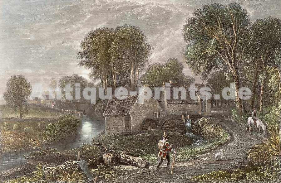 Paris. Original steel engraving, engraved by C. Mottram after Eugène Lami. 1843. Very good condition. Hand-coloured. 18,5x10,5cm. Matted.