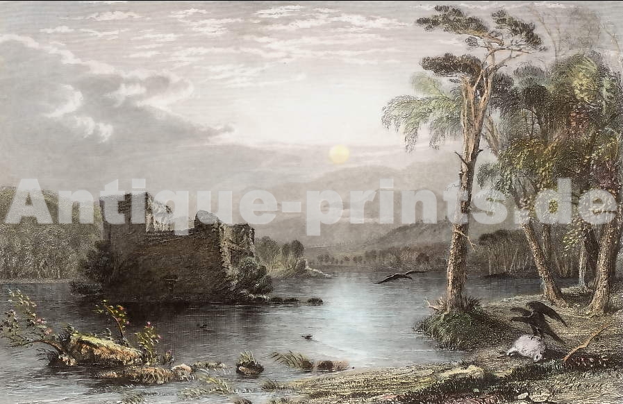 Scotland. Original steel engraving drawn by W. H. Bartlett, engraved by S. Fisher. 1839. Good condition. Hand-coloured. 17,5x11,5cm. Matted.