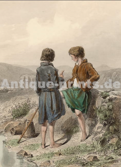 England. Original steel engraving, engraved by W. Le Petit after T. Allom. 1830. Very good condition. On chine appliqué. Hand-coloured. 15,5x9,5cm. Matted.